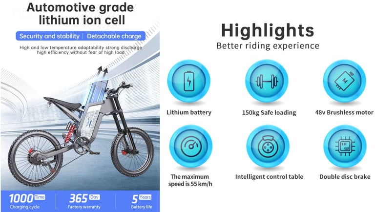 Impressive Speed and Range: With a maximum speed of ≤55km/h and an impressive endurance of 120-150km, the X21 sets the bar high for electric bike performance.