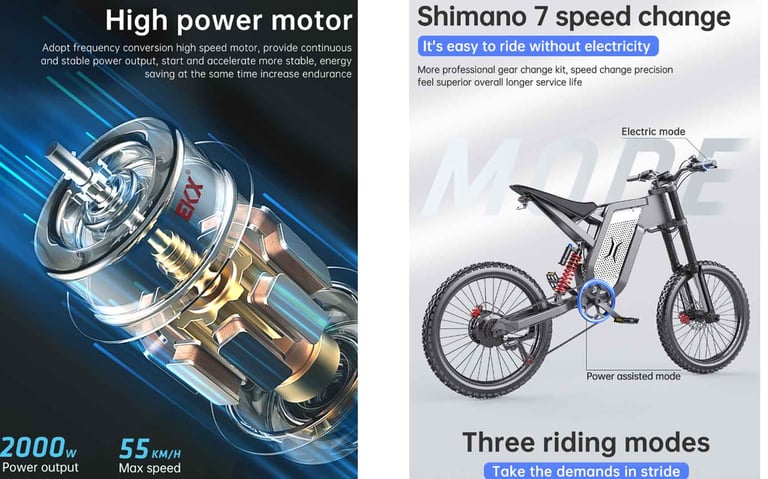 The EKX X21 Electric Bike boasts a range of features that make it a standout in the electric bike market: